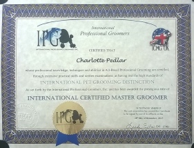 Charlie holds her Internationally Certified Master Groomer qualification & Ashley is a Certified Salon Professional working towards his masters qualification.